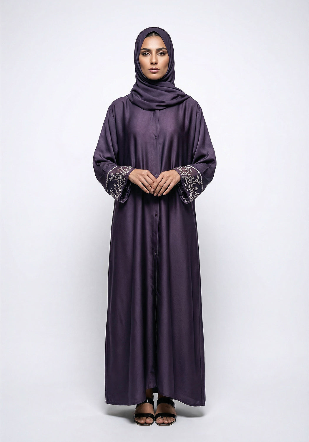 Purple Dabka Sleeves Abaya | Serene Threads