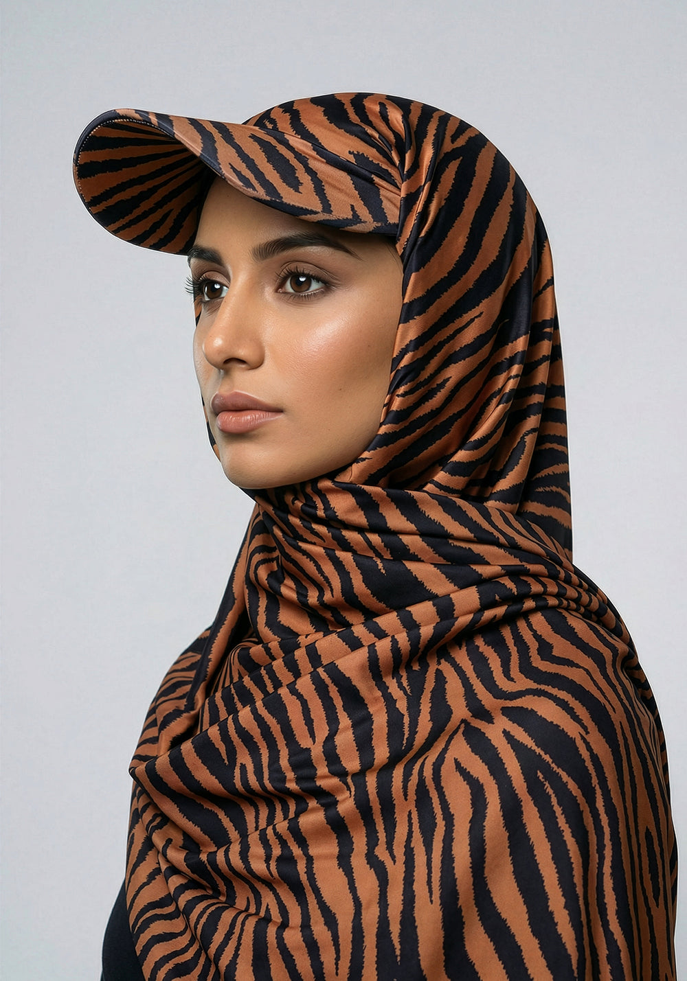 Turkish Hat Hijab - Zebra Print - Brown