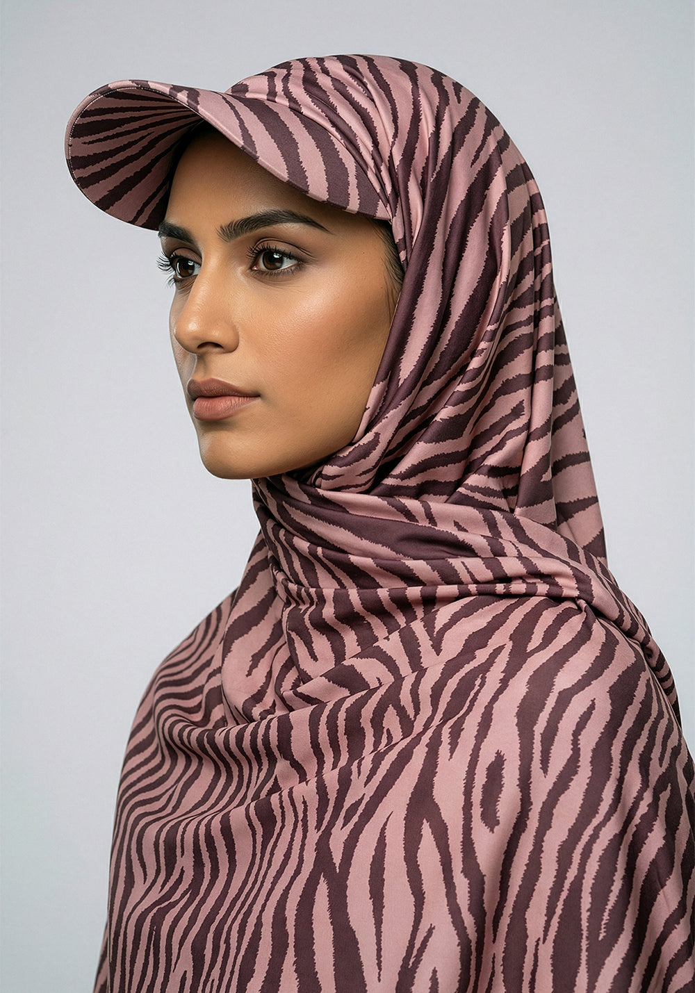 Turkish Hat Hijab - Zebra Print - Tea Pink