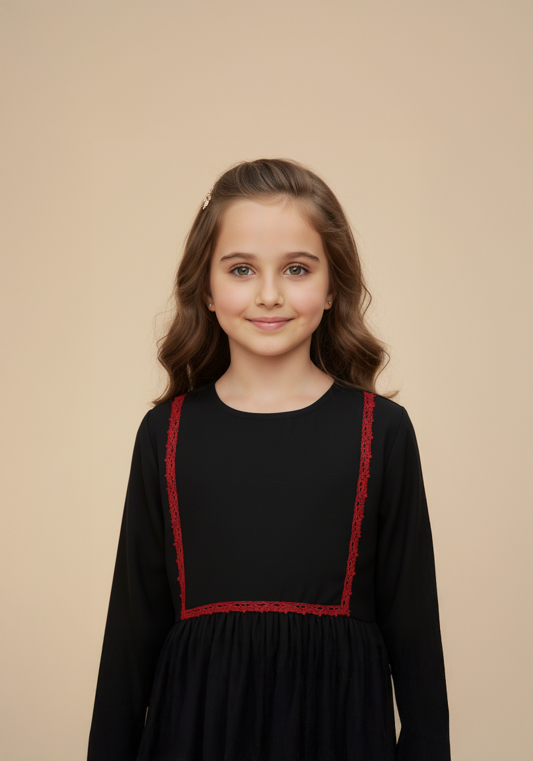 Kids Front Closed Black Red Lace Abaya